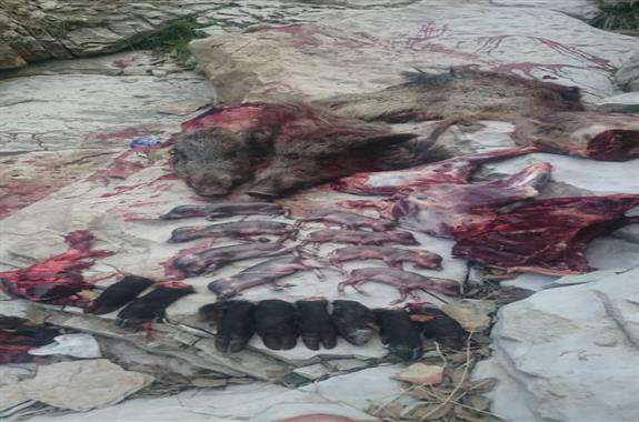 شکار بی رحمانه دو راس گراز وحشی آبستن در ایلام
