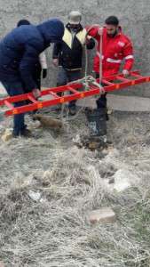 ماموران آتش نشانی تفرش، طی تماس اهالی در خصوص گیر افتادن دو توله سگ در چاهی عمیق در کوی امام ...