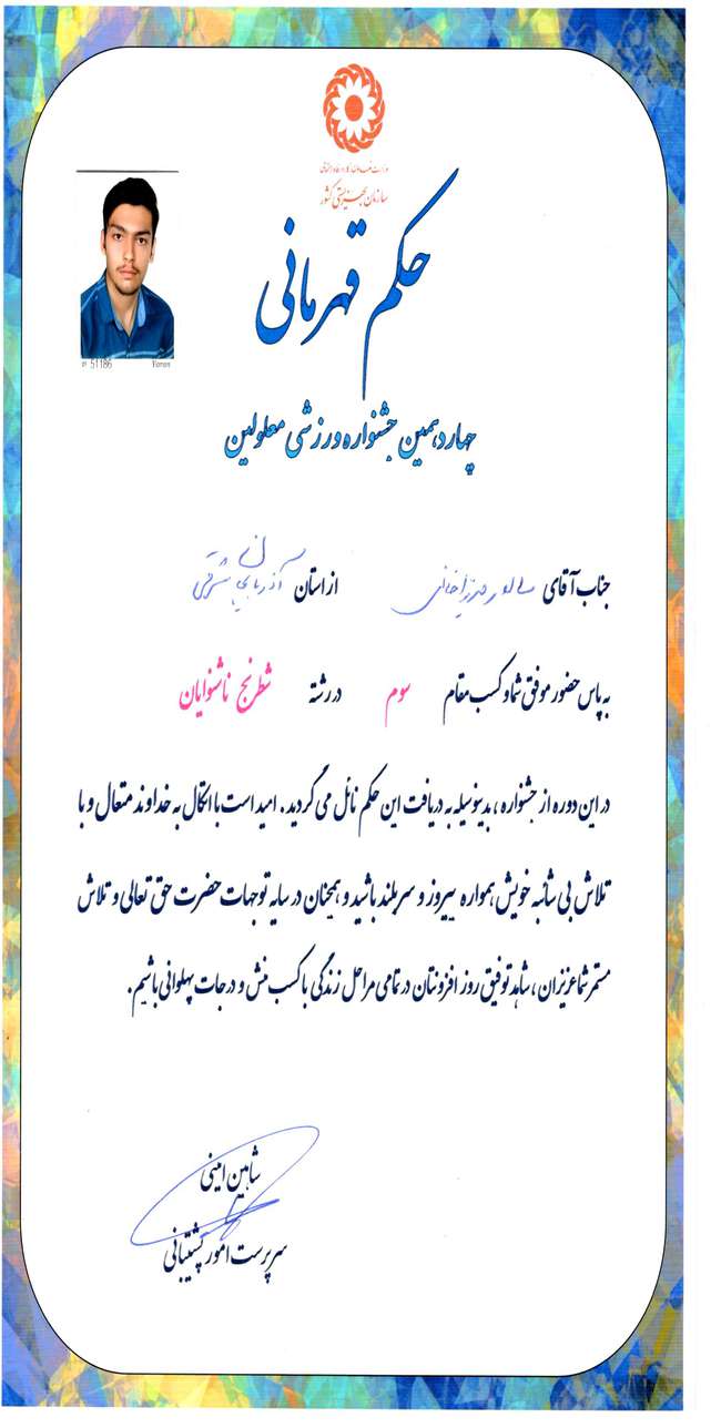با کمال خرسندی و افتخار آقای سالار میرزاخانی فرزند همکار عزیزمان جناب آقای محمد میرزاخانی در چهاردهمین جشنواره ورزشی معلولان ...