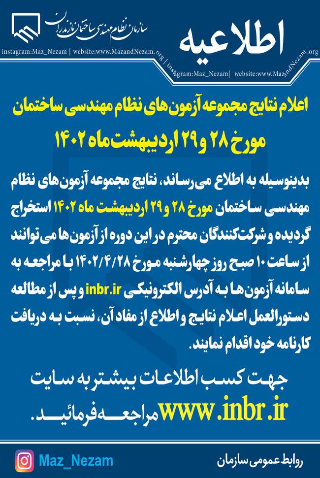 لازم به ذکر است نتایج آزمونهای موصوف پس از بررسی کامل تمامی درخواستهای بازنگری به سوالات آزمون ارسالی از سوی ...