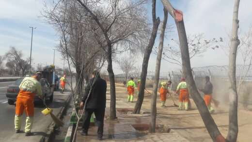 عملیات پاکسازی و شستشوی مسیر جاده پایگاه شکاری به طرف میدان شهید مدنی