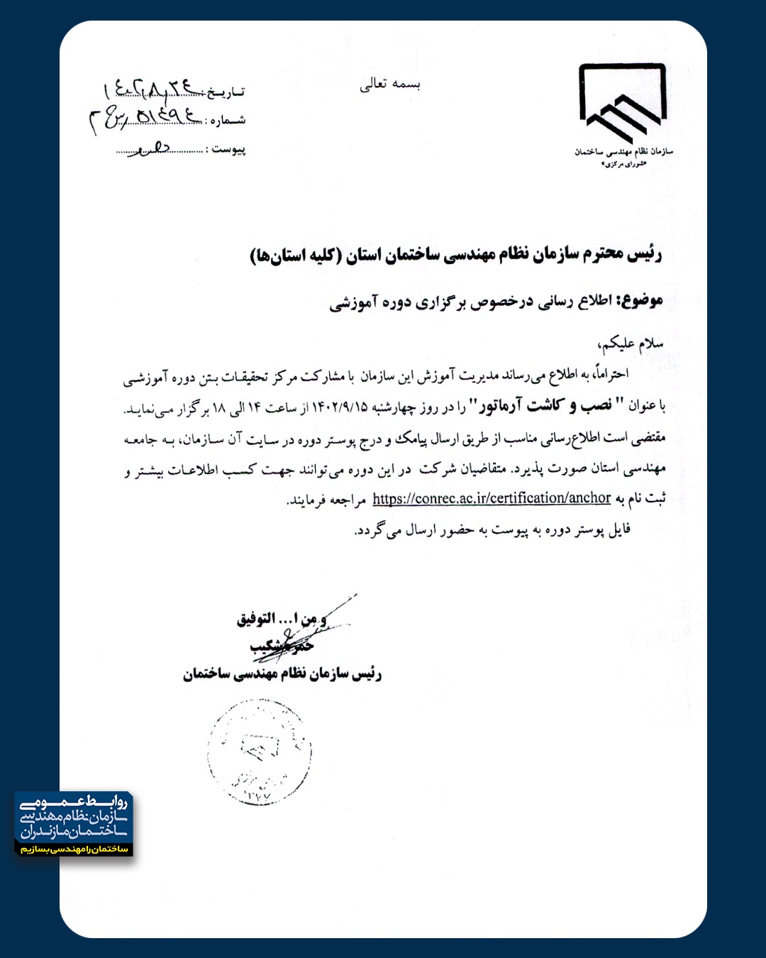 برگزاری دوره آموزشی نصب و کاشت آرماتور